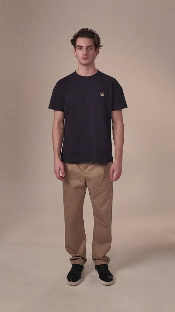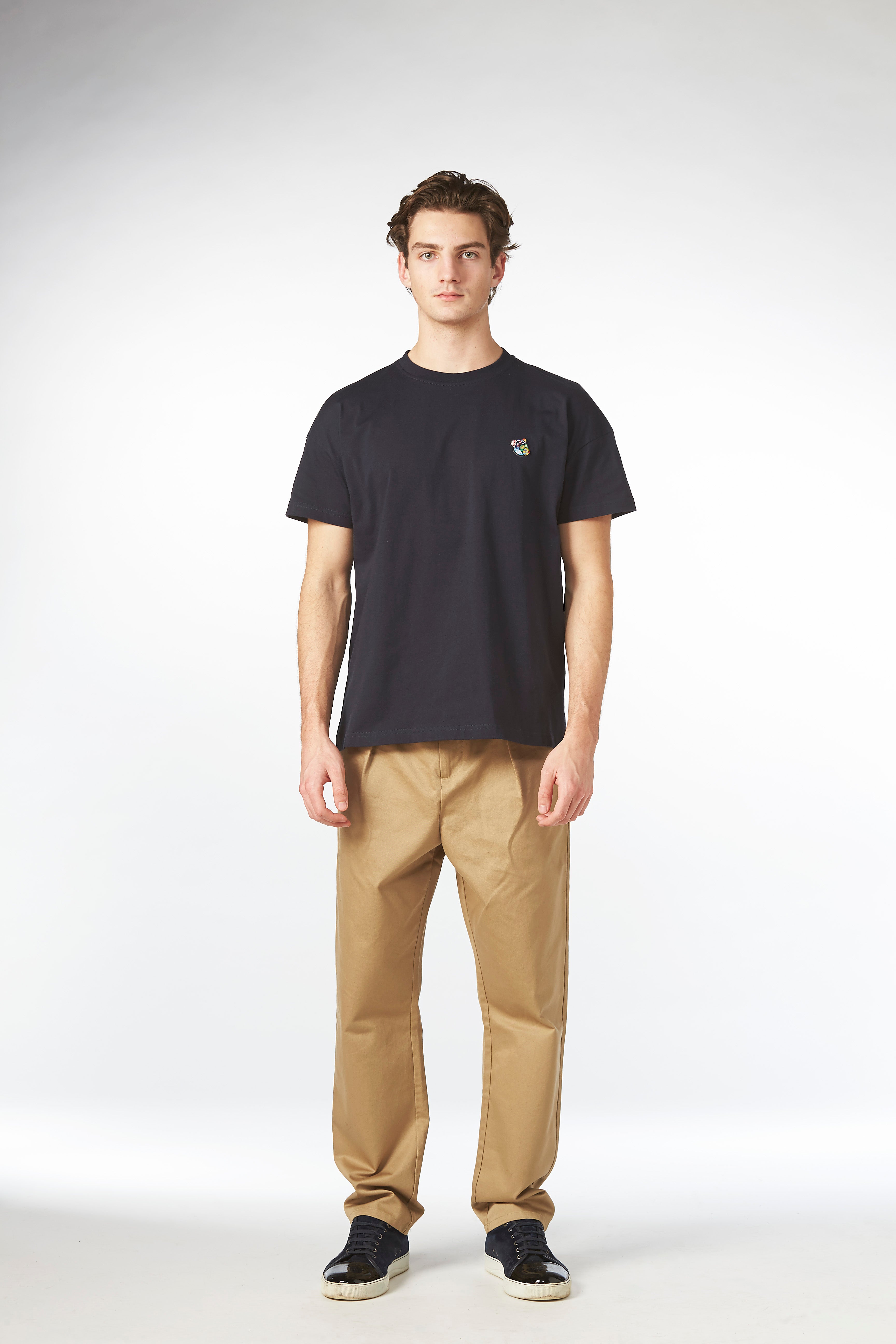 Stilet minimalistisk t-shirt i heavy bomuldskvalitet til enhver anledning. Det playful Copenhagen Teddy badge er placeret flot på brystet, og Tonsure logo er broderet i farven mørkeblå i nakken. Kan anvendes til det meste i din garderobe, og passer perfekt under vores overshirts.